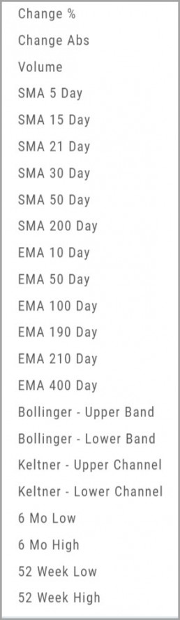 As you see, SMA & EMA offer numerous time periods. The shorter the time period, the more alerts you will receive – especially when set on Watchlists.